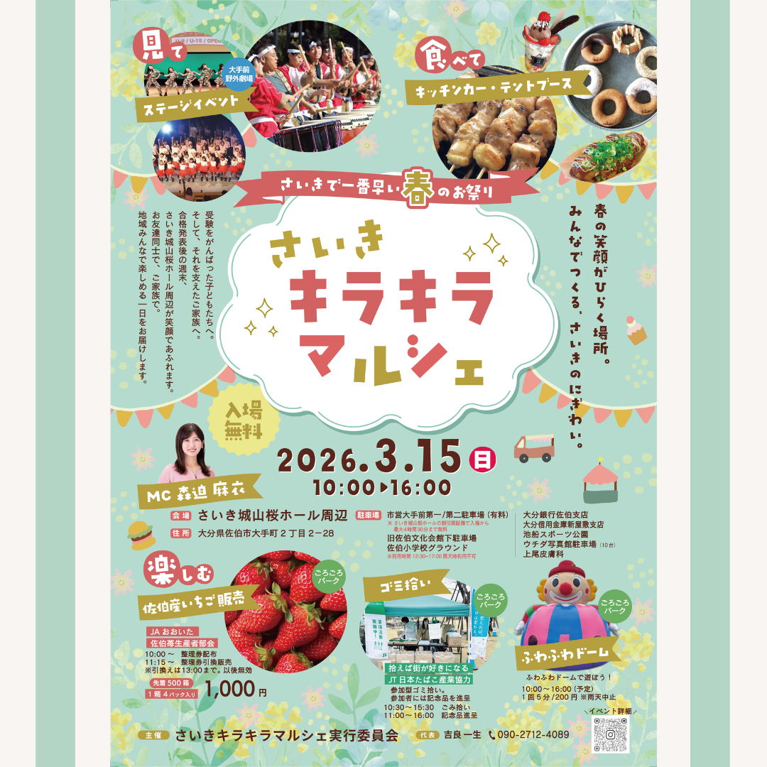 【2026年3月15日(日曜日)】 さいきキラキラマルシェ