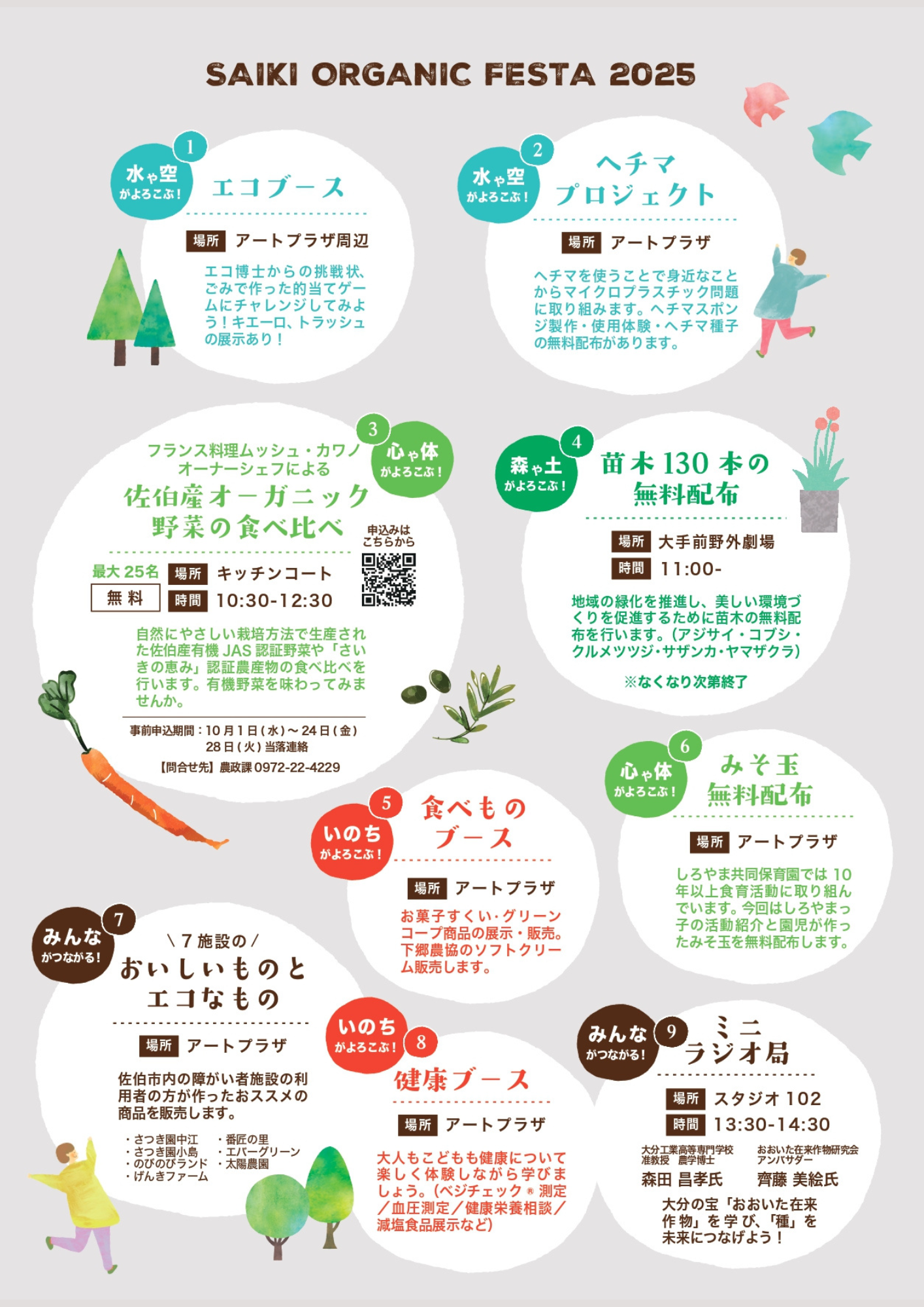 10月になりました🍂さいきオーガニックフェスタ2025を、11月8日(土)に開催します✨