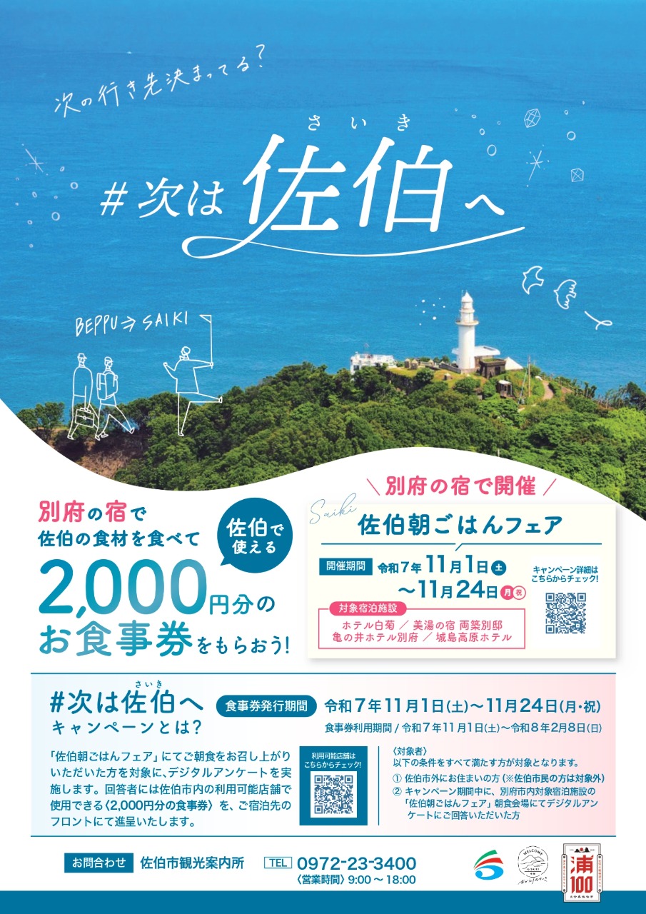 佐伯市の“おいしい”と“楽しい”を、別府でひと足先に体験できる、「#次は佐伯へ」キャンペーンが、令和7年11月1日(土)よりスタートします!