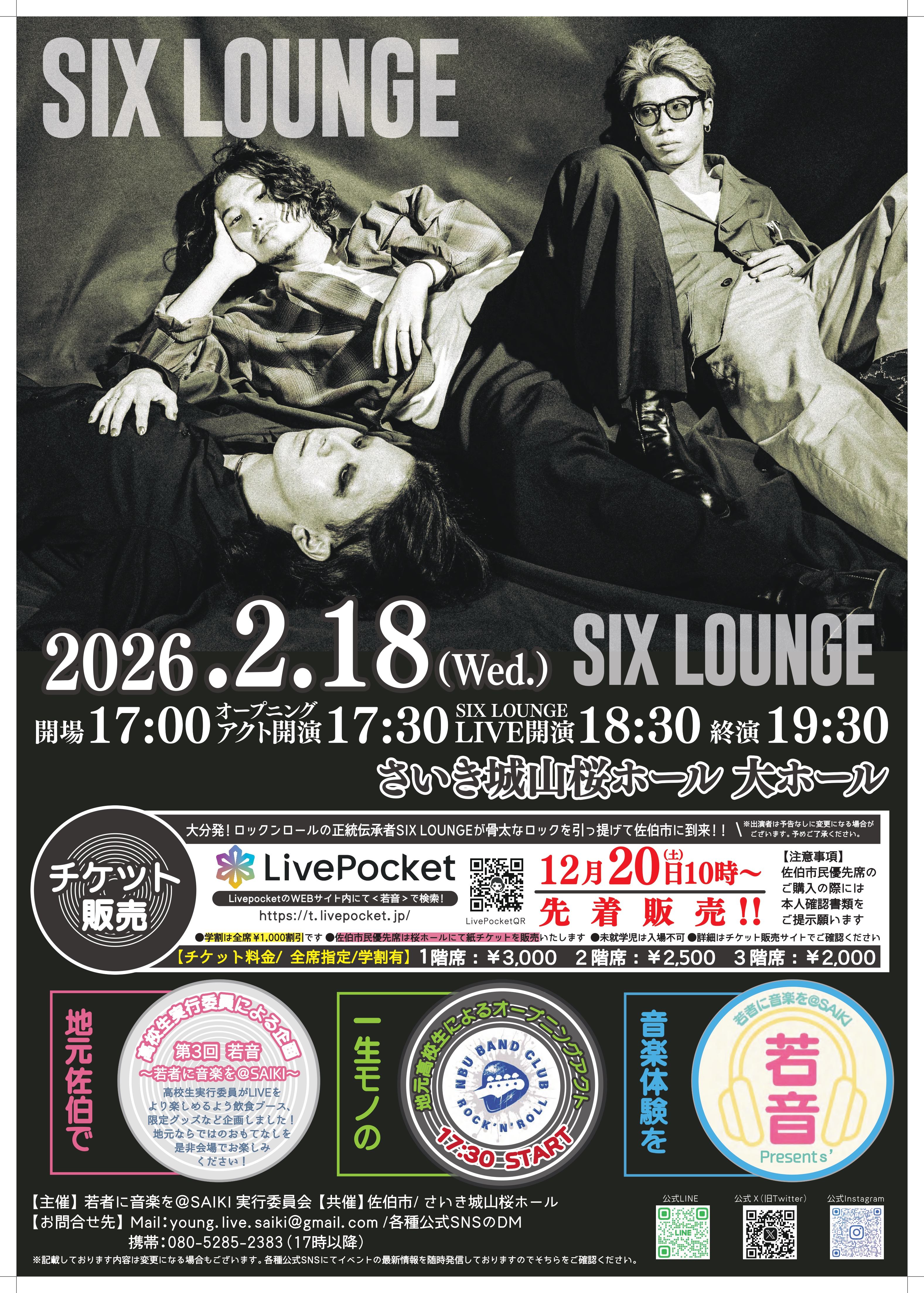 出演アーティストは、SIX LOUNGE に決定しました!!