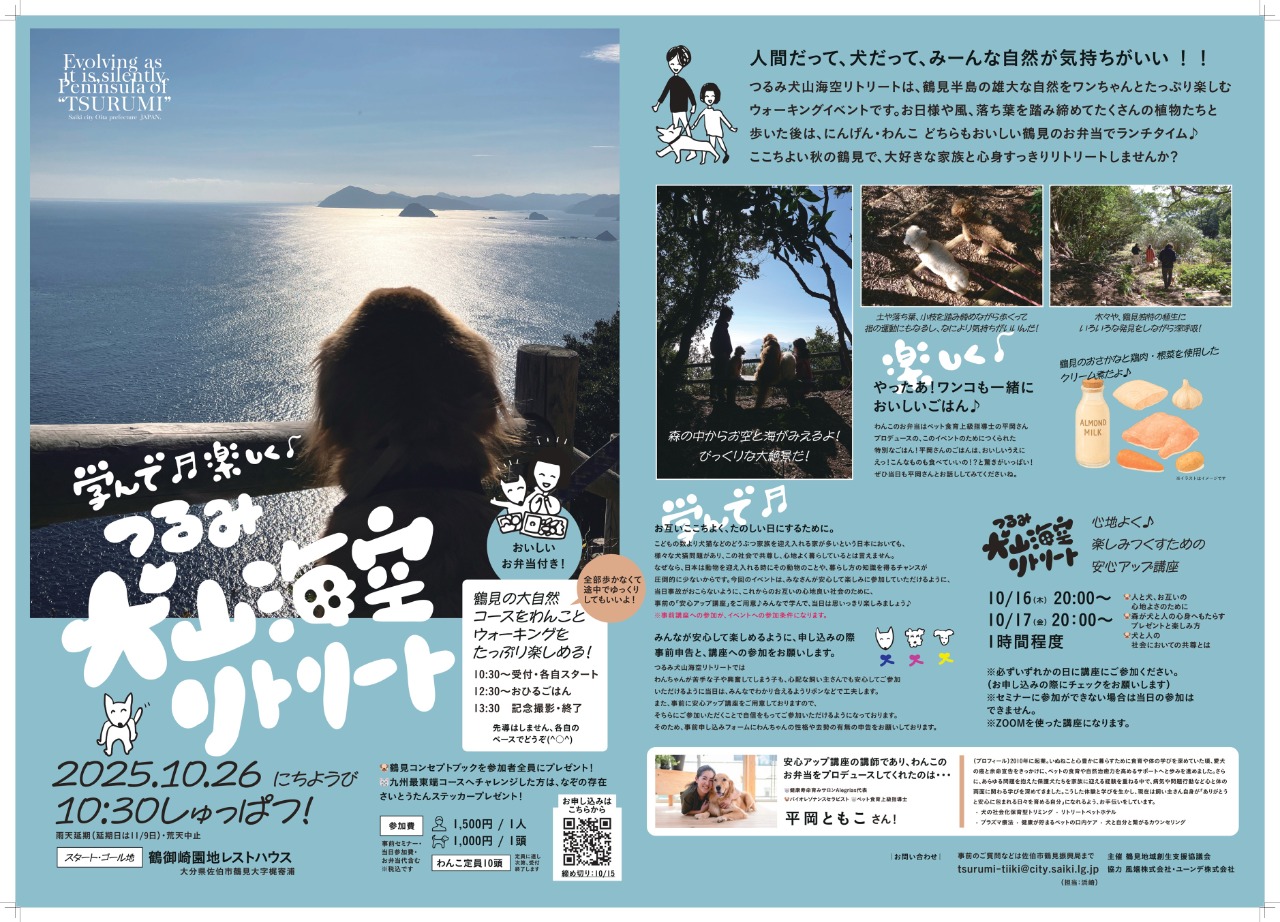 つるみ犬山海空リトリートは、鶴見半島の雄大な自然をワンちゃんとたっぷり楽しむ、ウォーキングイベントです。
