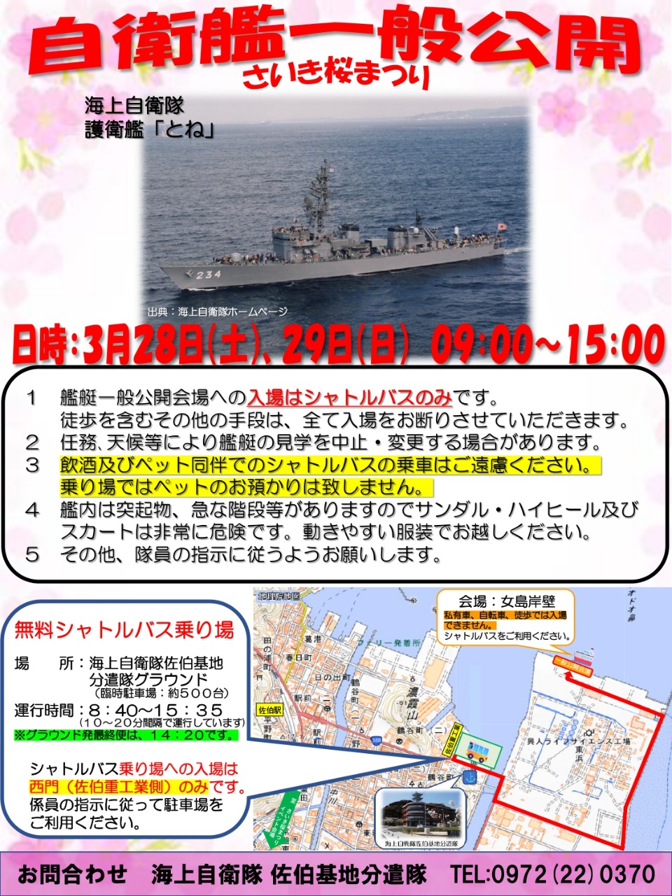 さいき桜まつりの開催にあわせて、海上自衛隊 護衛艦とねの一般公開が行われます!