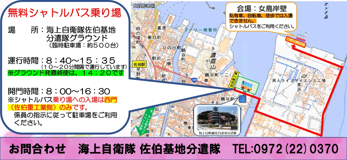 1. 艦艇一般公開会場への入場はシャトルバスのみです。