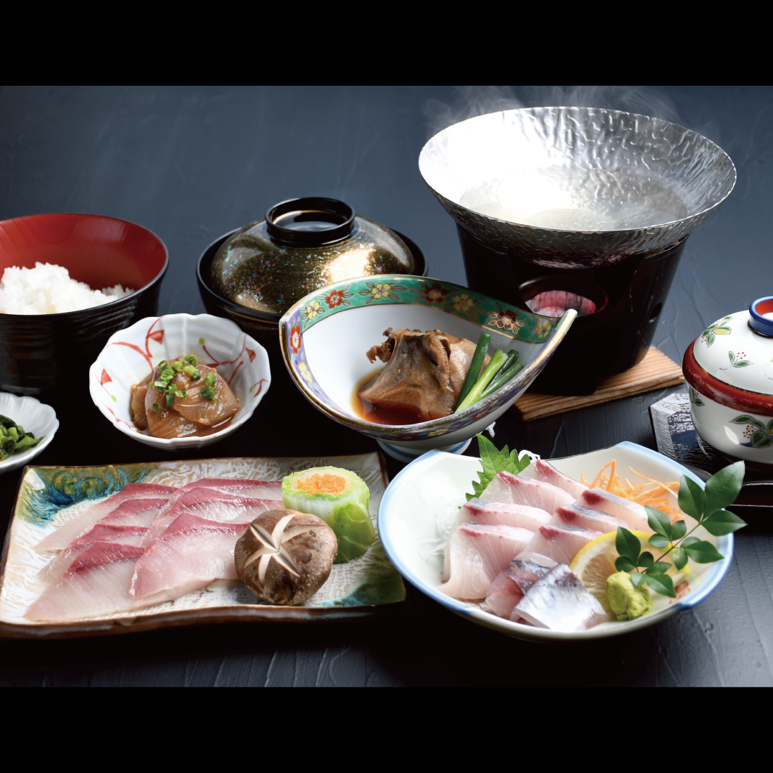 (小鉢・煮物・刺身・焼物・寿司か丼ぶり・あら汁)