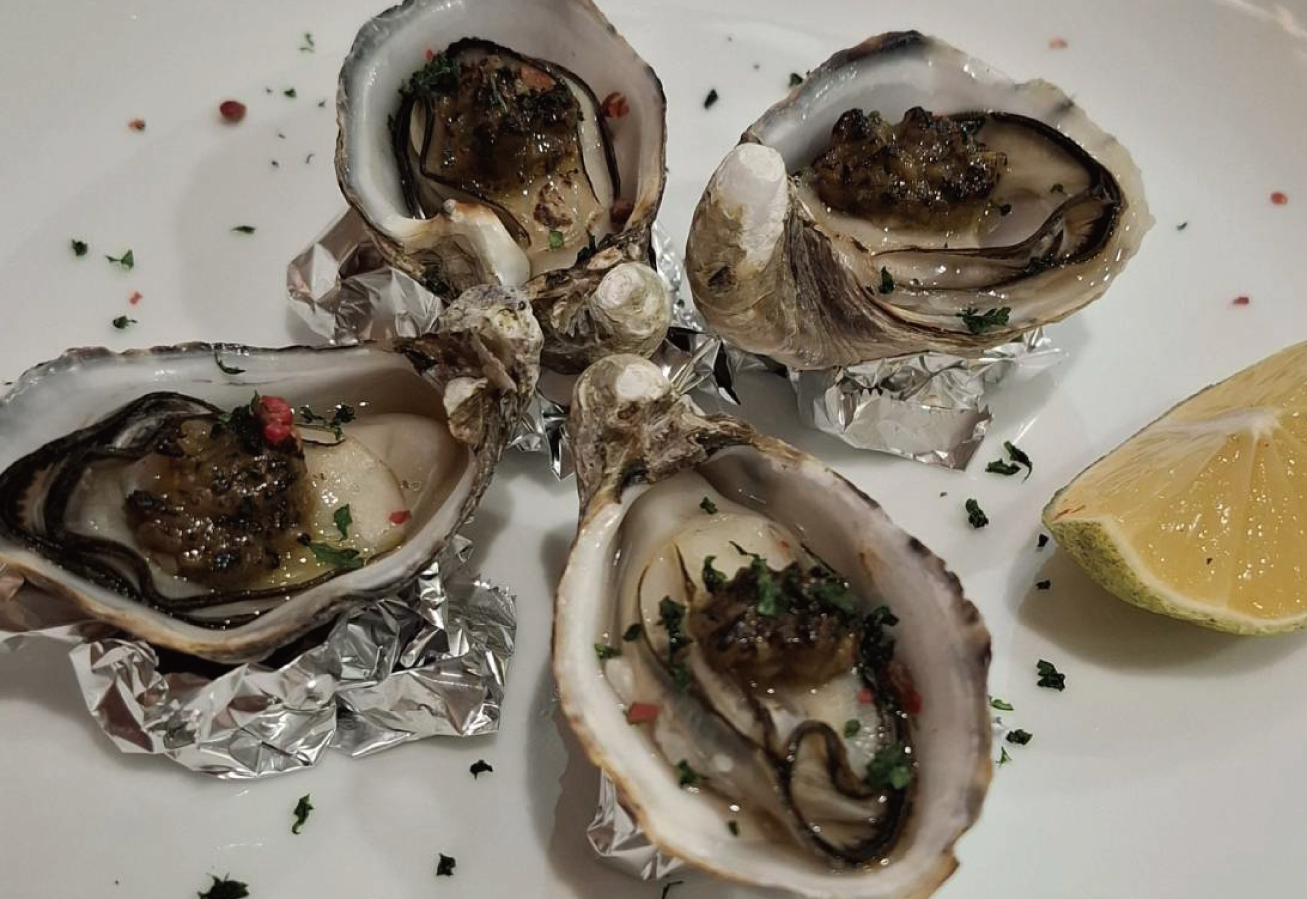 佐伯産真牡蠣を炙り牡蠣ソースと共に * 夜限定メニュー 1個 400 円・4個 1,500 円