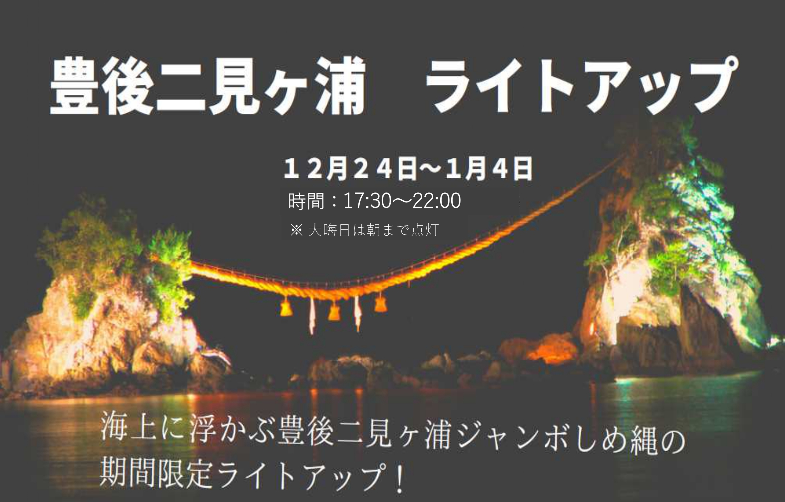 新年の幕開けを彩る花火と、豊後二見ヶ浦の夫婦岩の間にのぼる初日の出を、ぜひお楽しみください。